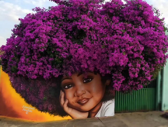 What better word for September than “blossom”? In Asuncion in September, you can’t walk a block without stepping on Lapacho or Bougainvillea blossoms, or seeing them cascading over walls and doorways. One Brazilian artist, Fabio Gomes Trindade, even uses the blossoming bushes to complete his murals – so creative! Check out more of his work here.