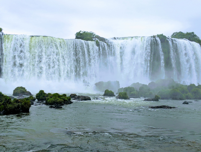 Recently, some of our staff members went on a camping trip to Iguazú Falls on the border of Brazil and Argentina. We arrived at Iguaçu National Park quite early in the day, and hopped on a tour bus for the scenic drive down to the waterfall. On the way, we saw a small capybara sitting on the bank! Arriving at our destination, we disembarked and excitedly started walking down the trail toward the falls. Around each turn, the view of the river expands slightly, which has the effect of a musical symphony that slowly crescendos into a majestic chorus. The ¾-mile trail loops and curves and descends lower and lower as walkers near the falls, ending with a bridge out into the most intense section of the waterfall, where viewers are soaked by spray from the pounding water, and have to shout to be heard. Pictures can’t capture the majesty of this beautiful natural wonder.