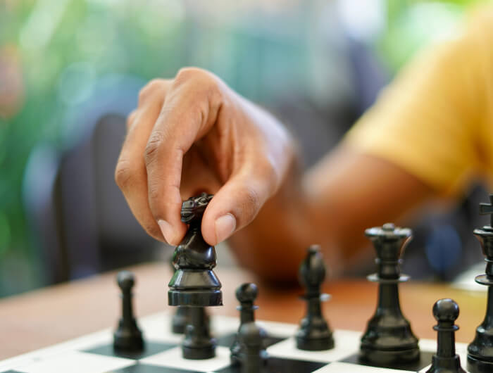 Example: Chess involves the use of careful strategy in order to defeat your opponent.